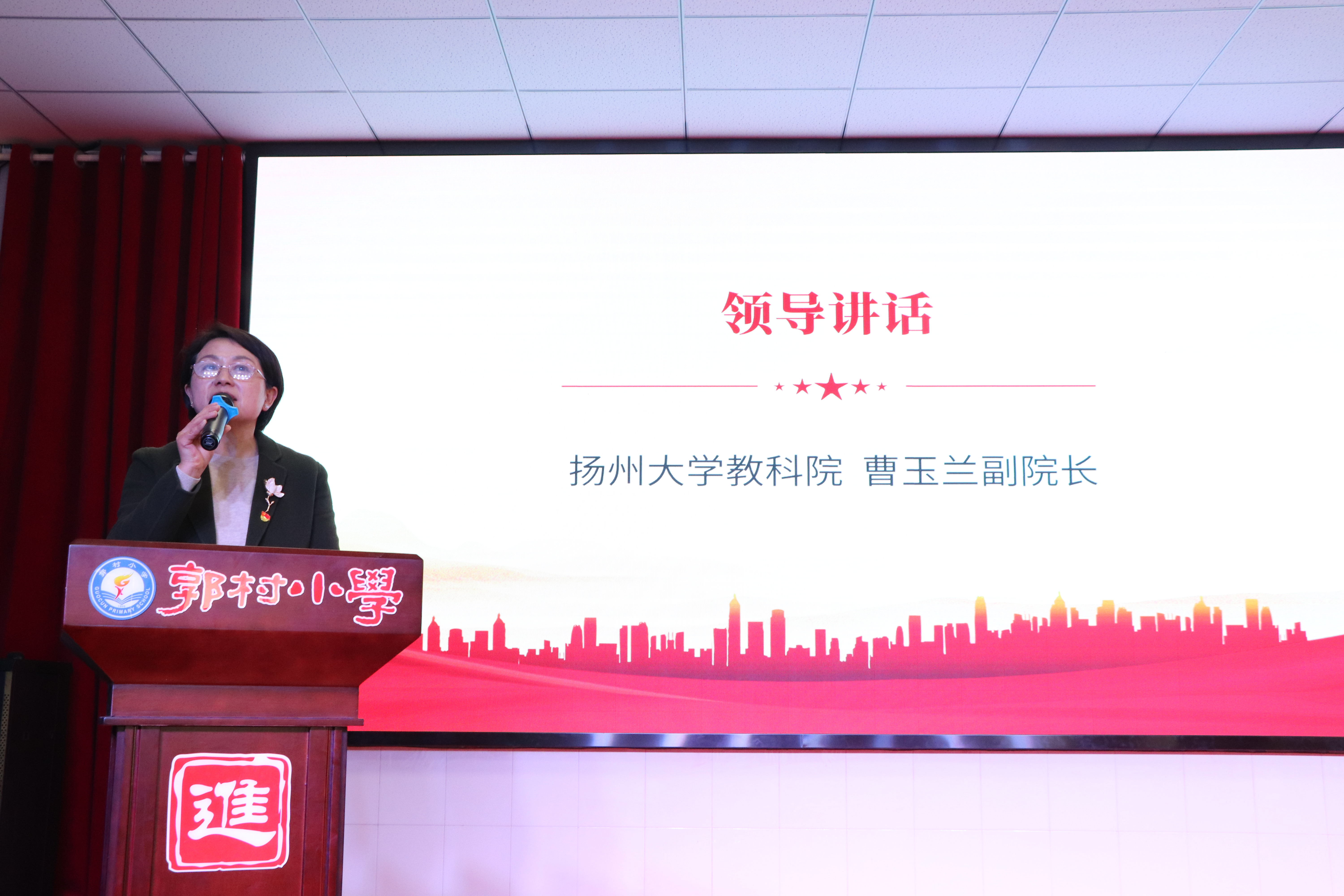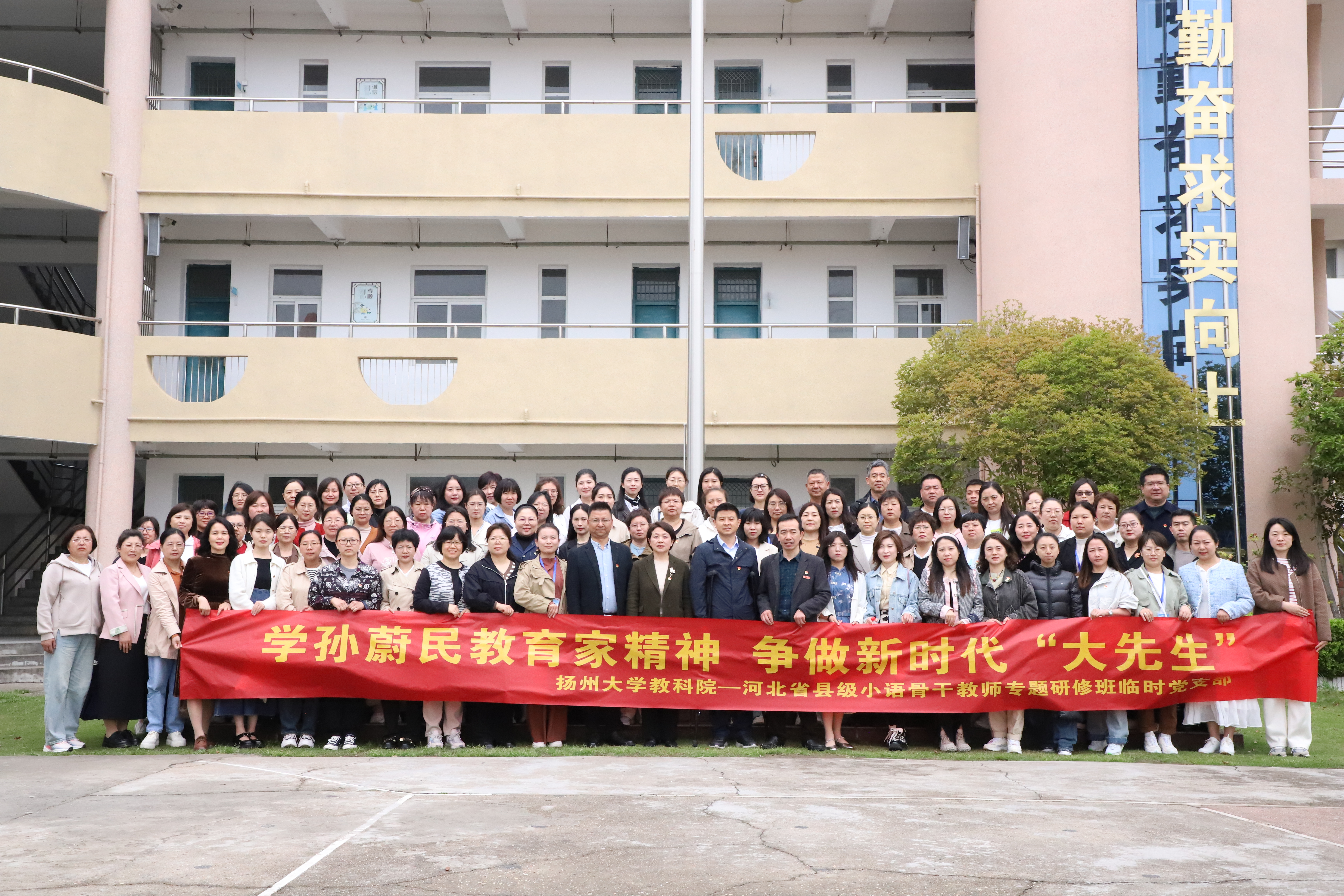 为传承教育家精神,推动区域教育合作开展,4月13日上午,院党委副书记朱鑫铨、副院长曹玉兰带队组织河北省小语骨干教师国培班全体学员前往扬州市江都区郭村小学,开展“学孙蔚民教育家精神,争做新时代大先生”专题研修实训活动。郭村小学校长许军、副校长严辉、大队辅导员何雪慧参加活动。