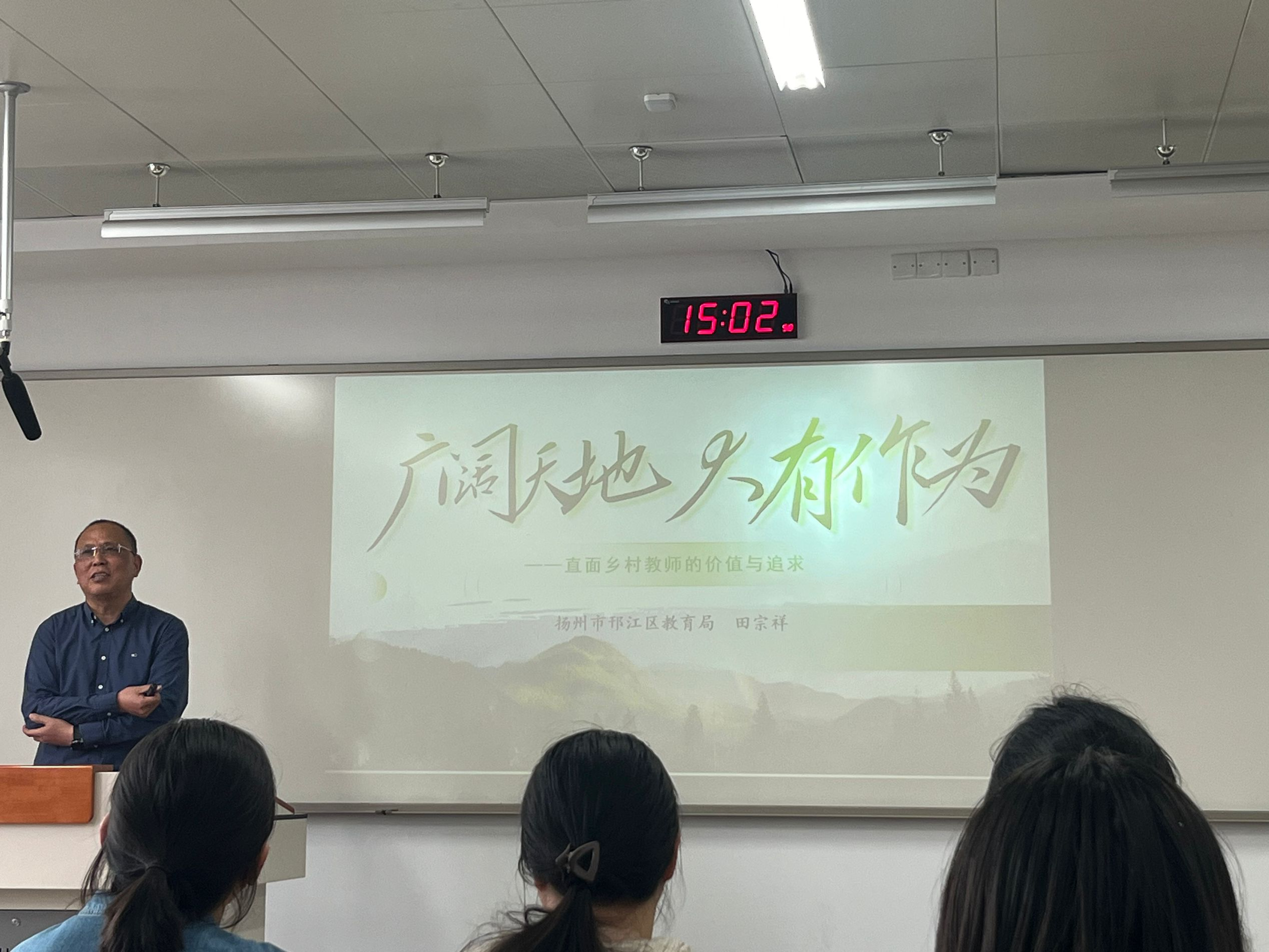 2024年4月25日下午,受教育科学学院、小学教育名师工作室邀请,扬州市邗江区教育局田宗祥老师来到我院,为20级小学教育定向师范生做了题为《广阔天地,大有作为——直面乡村教师的价值与追求》专题讲座。