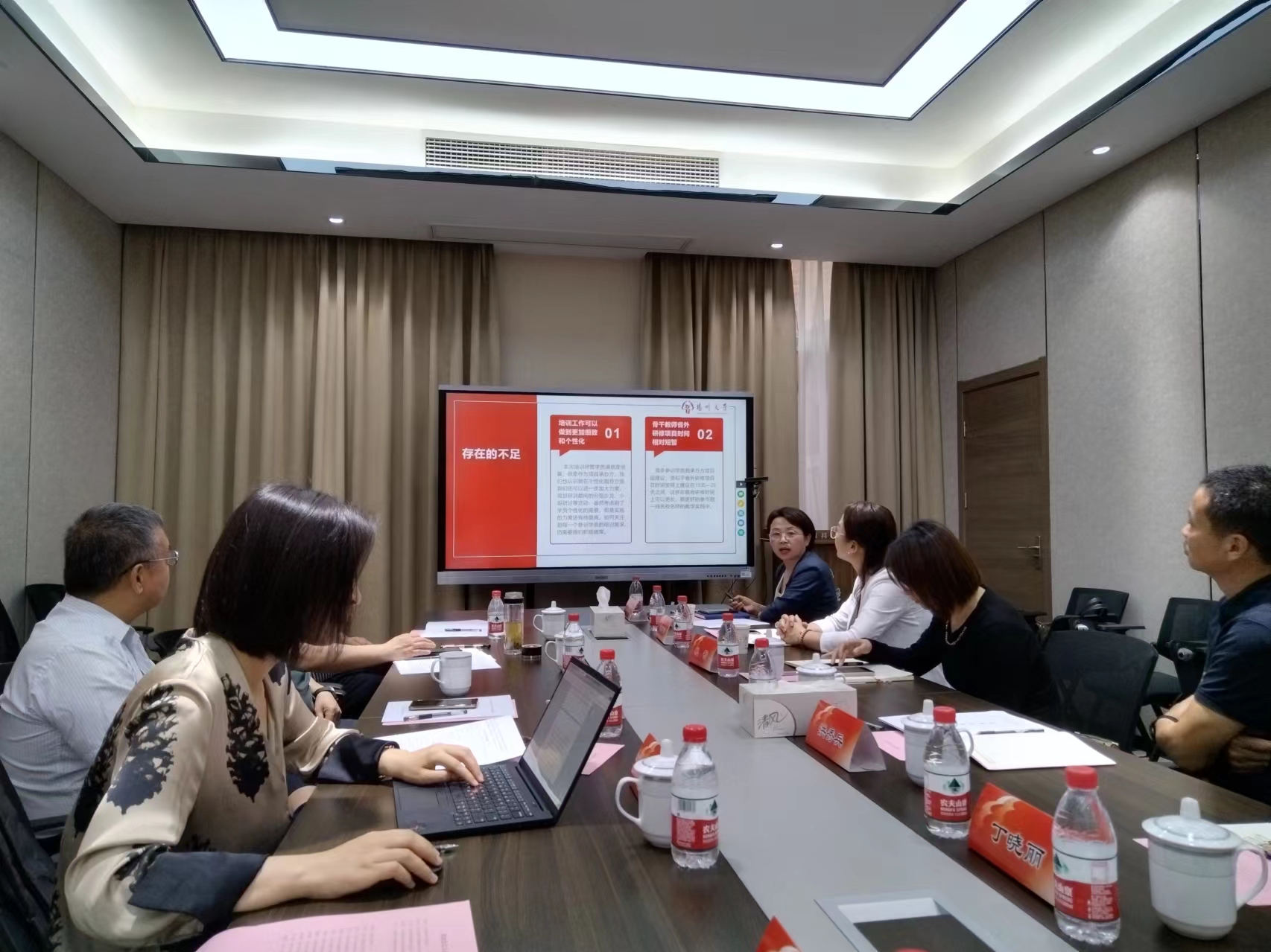 视导组现场查阅“国培计划”相关档案资料,就材料整理的有序性和直观性给予了高度评价,针对材料内容与项目执行人员进行了深度交谈。会后,视导组进行了教学场地的实地考察