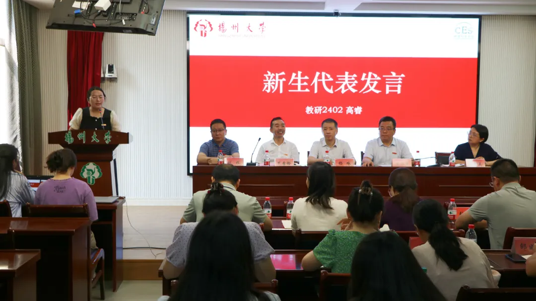来自教研2402班的高睿同学也作为新生代表表达了自己对研究生生涯的展望。她立志要做崇德向善、业精于勤、知行合一的教科人,代表新生立下要在风华正茂的年纪踔厉奋发的誓言。