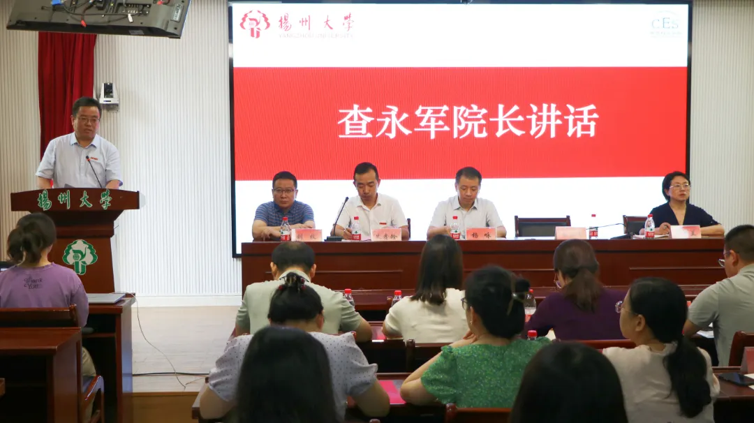 为帮助全体研究生尽快融入校园生活,引领发展方向,9月5日上午,我院于瘦西湖校区65号楼西附楼二楼报告厅举办2024级研究生开学典礼。我院党委书记杨咏、院长查永军、党委副书记朱鑫铨、副院长曹玉兰、副院长刘牧出席本次典礼。各学科带头人、教师代表、班主任代表、全体辅导员、2023级学生代表及全体2024级研究生参加典礼。院党委副书记朱鑫铨担任本次典礼主持人。