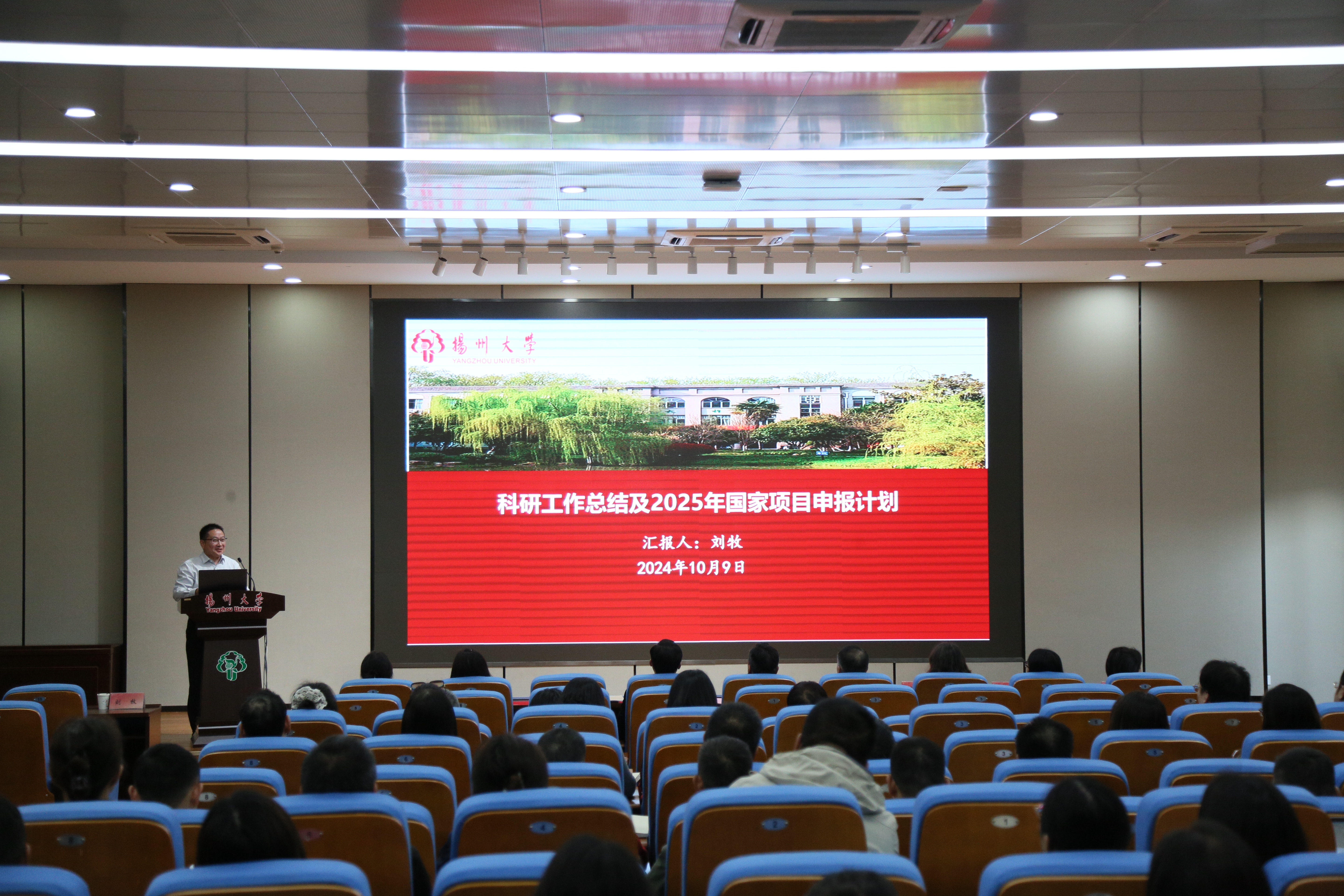 杨咏宣读了《关于公布2024年学院科研团队立项资助评选结果的通知》,还对获得立项资助的7个科研团队进行了授牌。刘牧代表学院对2024年上半年科研工作进行了系统的总结并对2025年国家级项目申报进行了部署。