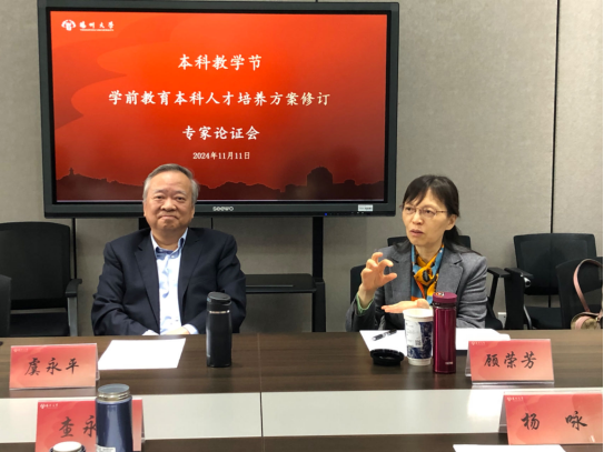 2024年11月11日,我院学前教育专业迎来了南京师范大学的虞永平教授和顾荣芳教授,两位专家就本科人才培养方案修订及学科建设工作进行了深入的指导和交流。此次研讨会旨在进一步提升扬州大学学前教育专业的教学质量和学术水平,为培养更多优秀的学前教育人才打下坚实基础。