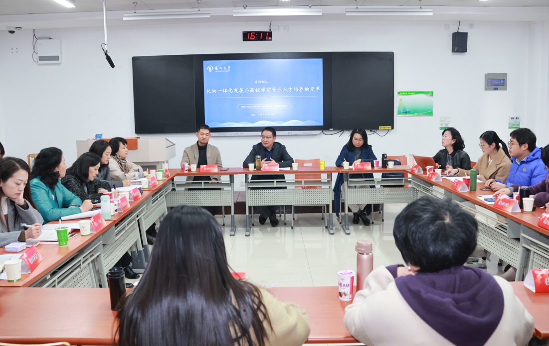 主旨报告后,与会者围绕“托幼一体化发展与院-园合作模式的优化”、“托幼一体化发展与高校学前专业人才培养的变革”等主题,分两个会场开展了研讨交流。
