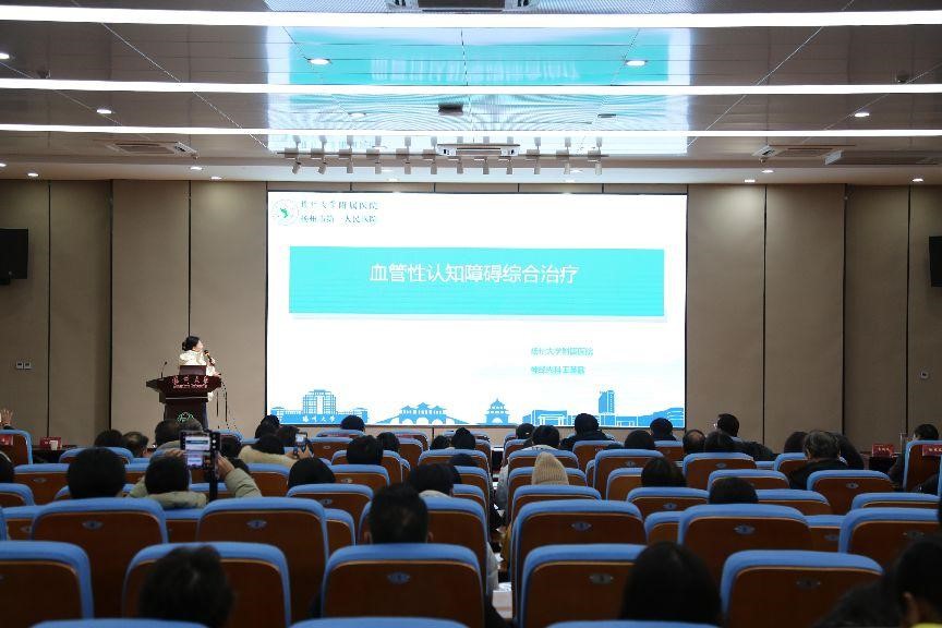 江苏省医学会物理医学与康复医学分会神经康复学组委员、扬州市康复医学会第二届理事会副会长王英歌作了题为《卒中后认知功能障碍综合治疗》的学术报告,依据自身多年临床经验,从血管性认知障碍的简介、诊断及预防和治疗三个方面普及了血管性认知障碍综合治疗相关知识,分享了血管性认知障碍领域最新研究成果。