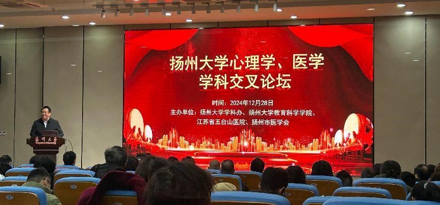 2024年12月28日,2024年扬州大学心理学、医学学科交叉论坛胜利召开。此次论坛由扬州大学学科办、扬州大学教育科学学院、江苏省五台山医院和扬州市医学会联合主办,吸引了各界专家学者、师生和心理学爱好者等共计200余人参与。