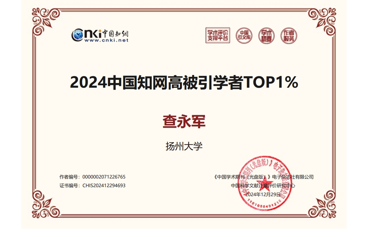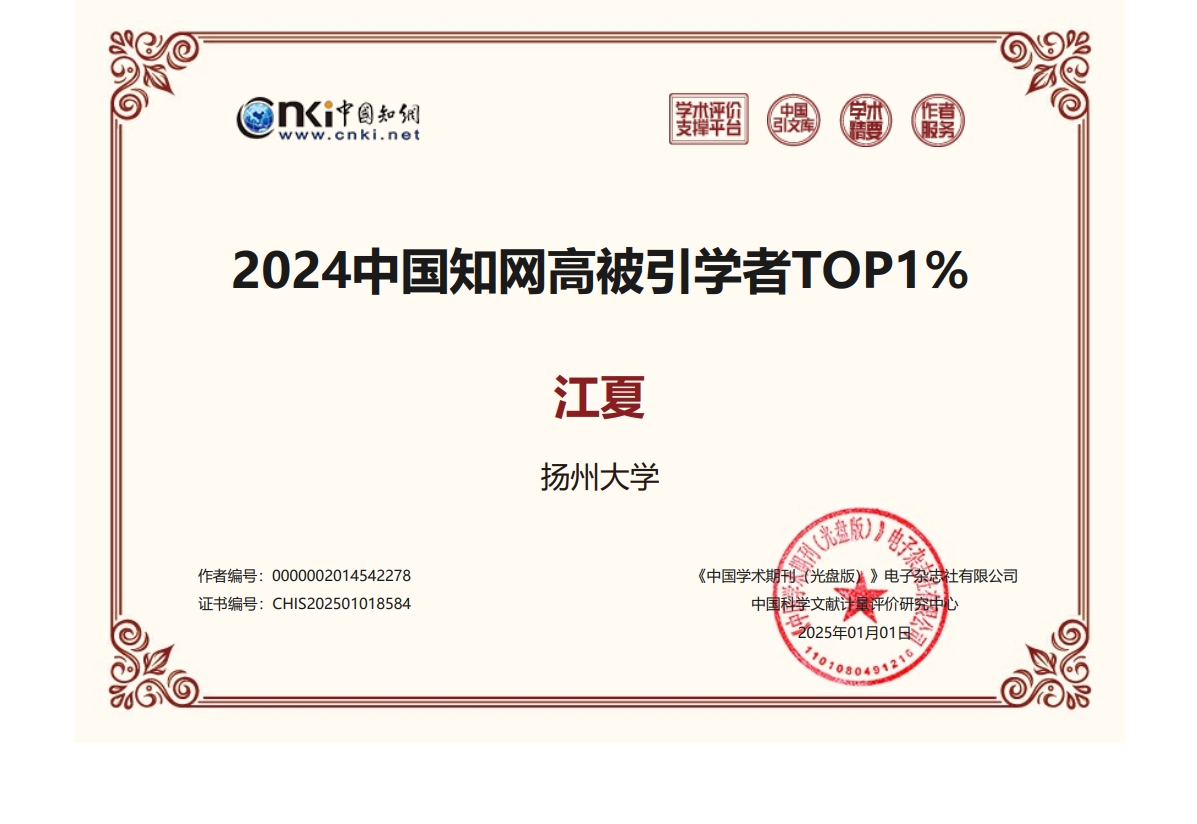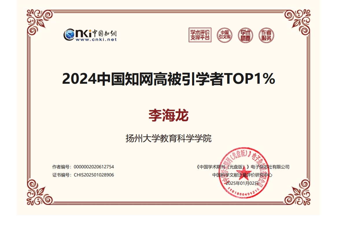 近日,中国《知网》公布2024中国知网高被引学者榜单,我院多位教师入选TOP1%、TOP5%榜单。