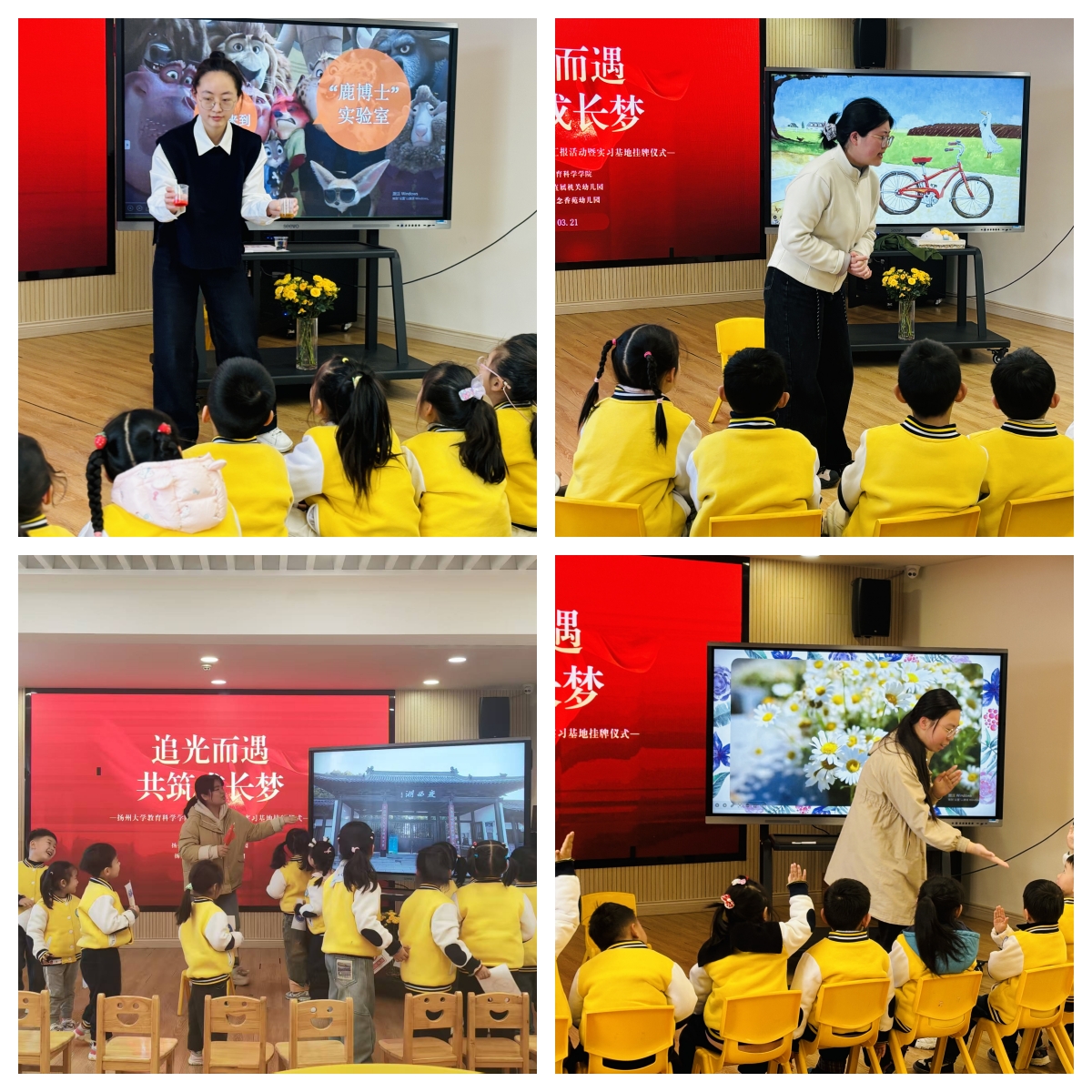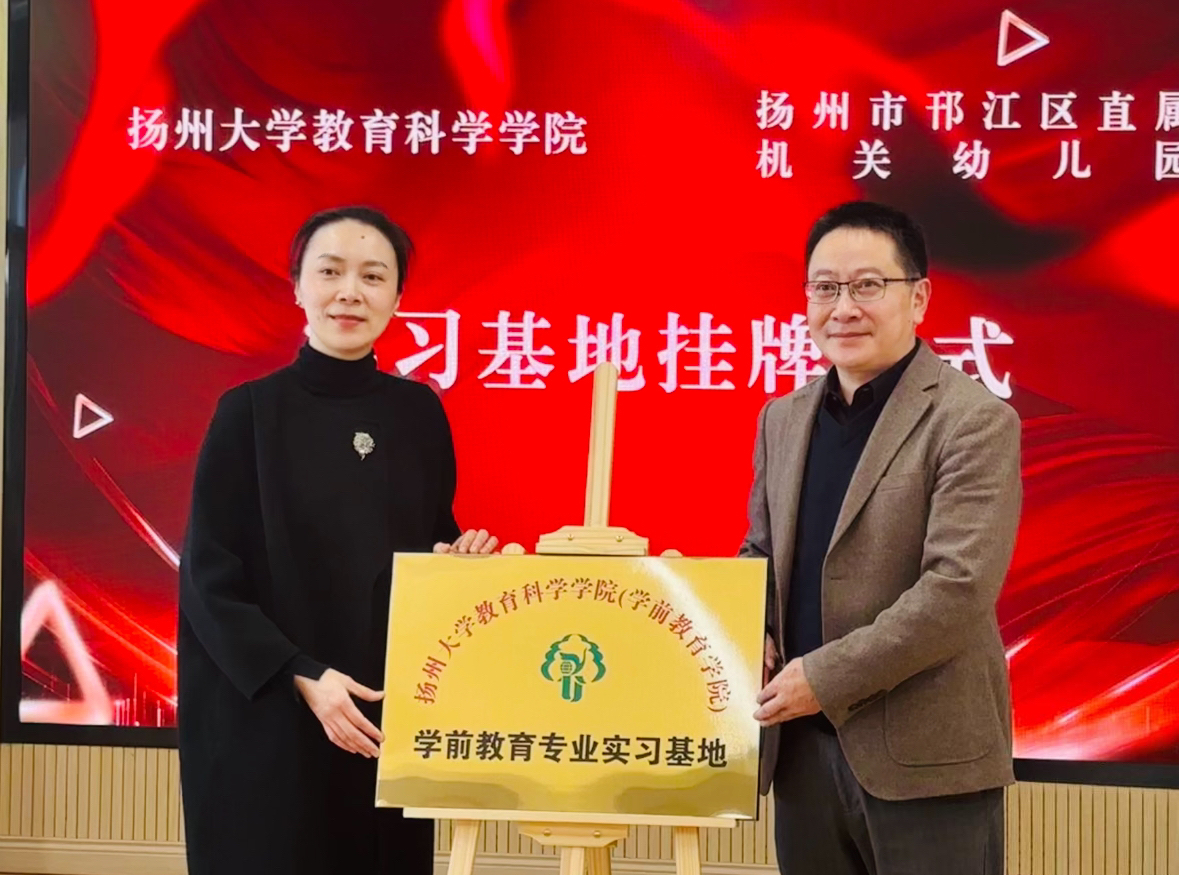 3月21日上午,学院与邗江区直属机关幼儿园举行实习基地挂牌仪式,并举办学前教育专业2101级学生实习成果汇报活动。学院副院长刘牧、学前教育系主任石建伟及教师代表樊柳然、国宁出席活动,双方就协同育人、资源共享达成深度共识。