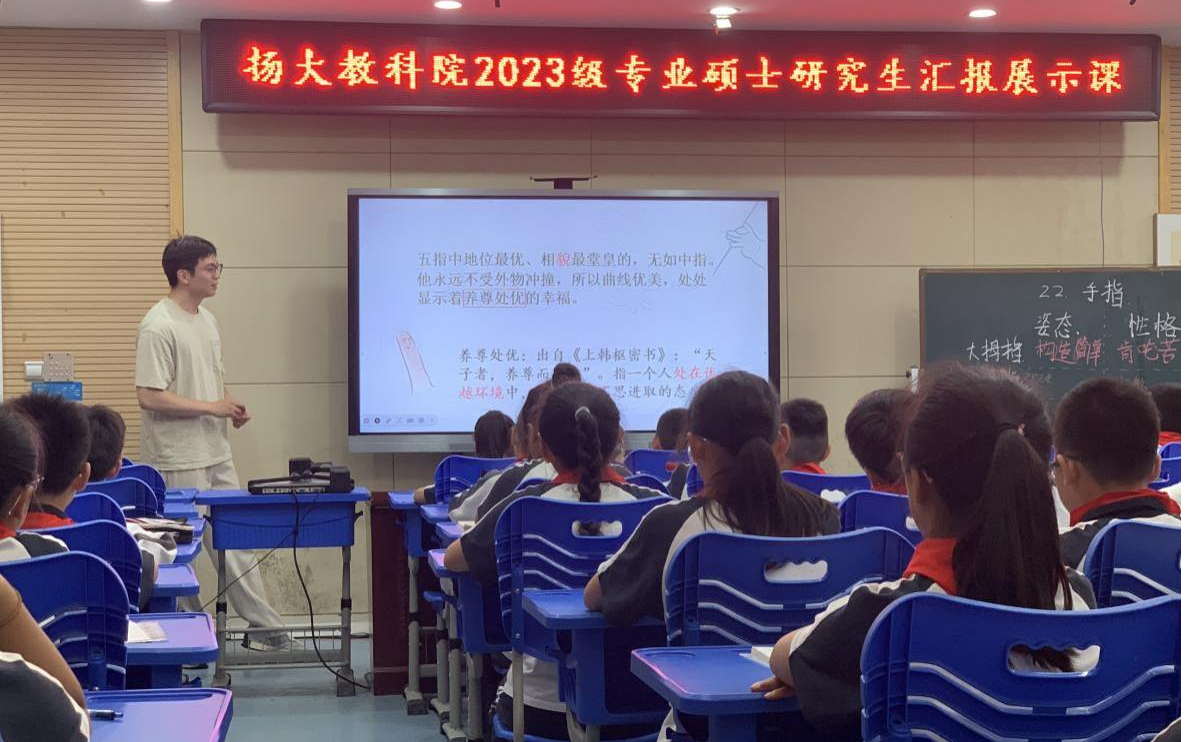 据悉,育才小学、维扬实验小学、扬州大学教科院附属杨庙小学近日也分别举行了2023级小学教育专业硕士研究生实习汇报课展示活动。