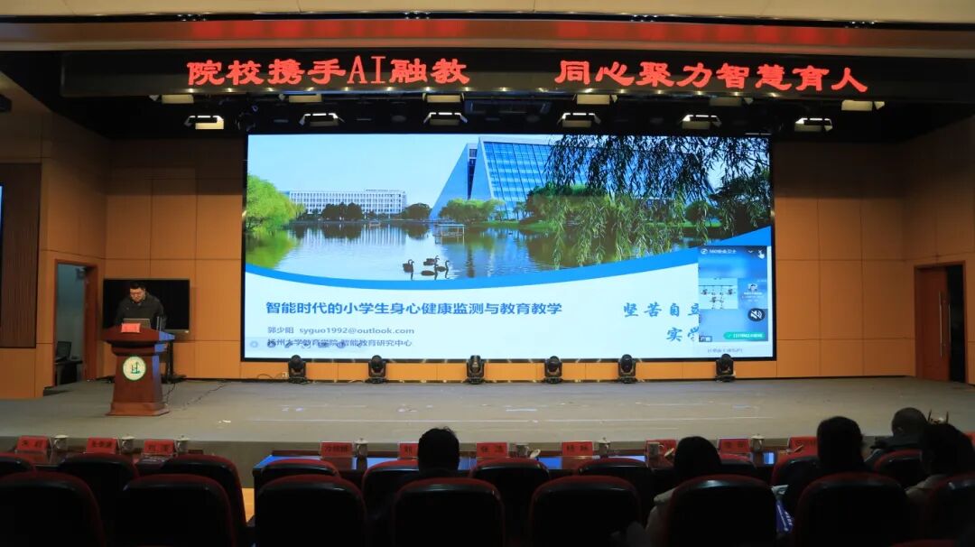 扬州大学教育学院郭少阳博士开展了题为《智能时代的小学生身心健康监测与教育教学》的专题报告。报告立足智能时代教育发展新趋势,结合前沿研究成果,系统剖析了小学生身心健康发展呈现的新特点与面临的新挑战;落脚于教育转化层面,提出将监测数据精准融入教育教学环节、构建个性化身心健康干预方案的具体策略,为学校科学开展小学生身心健康教育工作提供了兼具理论高度与实践价值的科学指导。