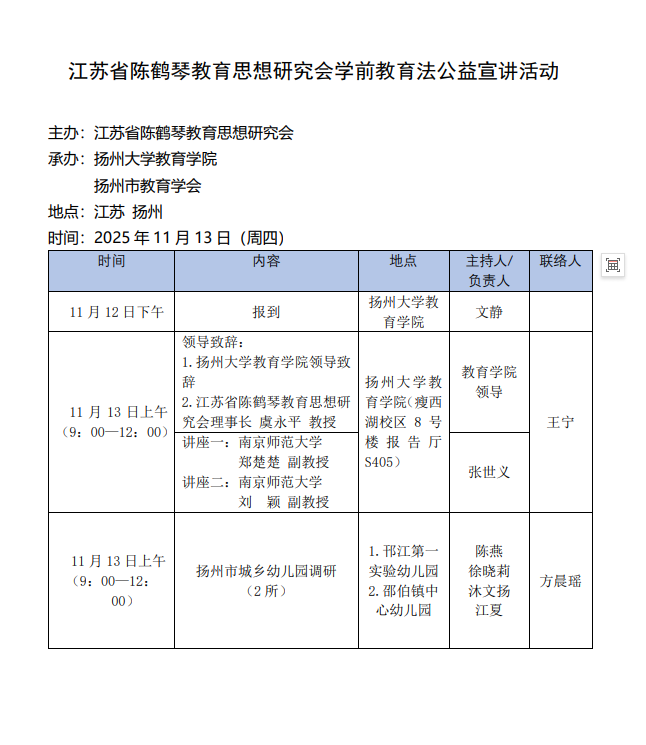 江苏省陈鹤琴教育思想研究会学前教育法公益宣讲活动