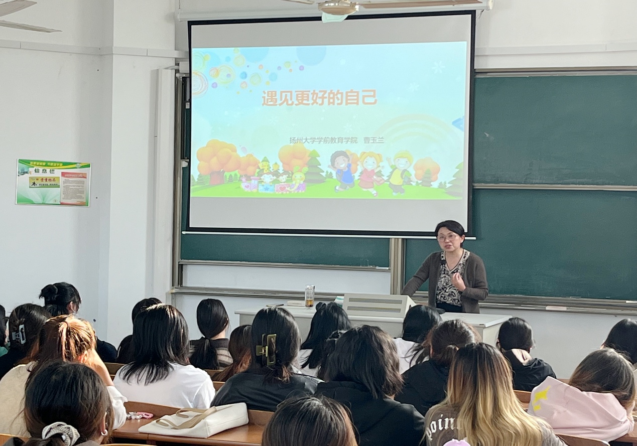 曹院长以《遇见更好的自己》为主题,向学生展示了学前教育行业前景,引导学生了解挖掘自身的优势和潜力,培养个人自信和专业自信。