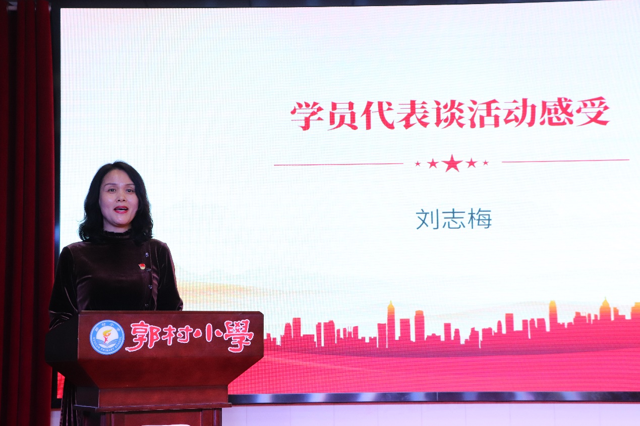 两校传承与践行蔚民精神的丰富经验使在场学员收获颇丰,学员代表河北省六一小学党员教师刘志梅表示:“感谢扬州大学和郭村小学为我们搭建了学习和交流的平台,让我们能够近距离感受老一代教育家的教育情怀,学习郭村小学思想政治教育开展的宝贵经验。” 郭村小学、我院相关负责人分别介绍了两校传承践行蔚民精神的事例与建设成果,向学员们展示了学习蔚民精神的现代实践意义,令学员们受益匪浅。