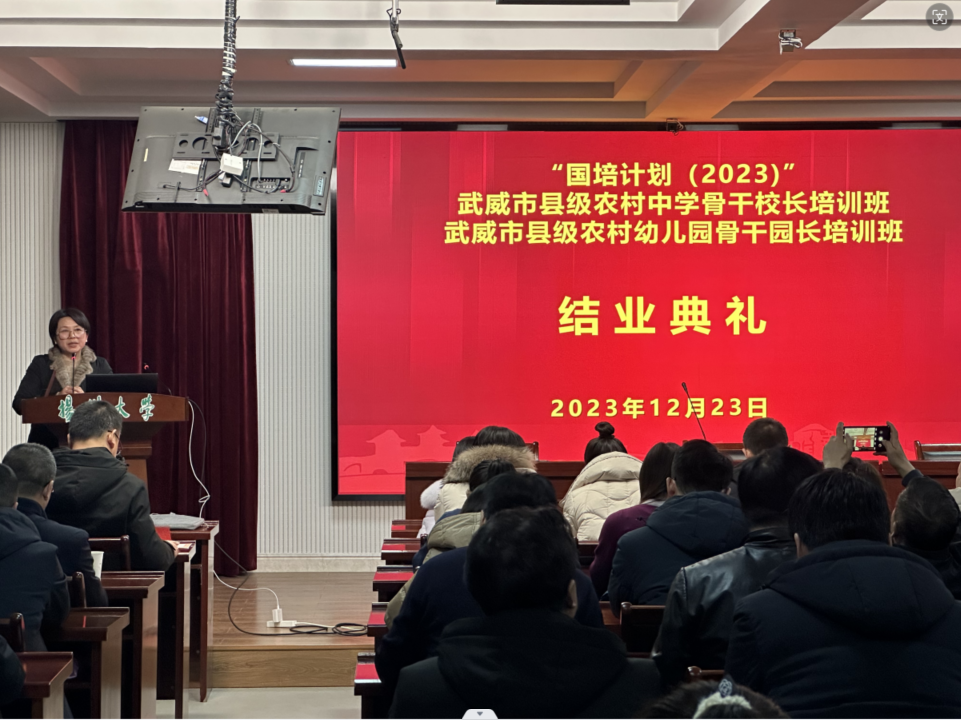 2023年11月10日—2023年11月18日、2023年11月18日~12月17日“国培计划(2023)”—武威市县级农村中学骨干校长、幼儿园骨干园长培训项目在我院分阶段实施并圆满完成,共有100位来自武威市校长、园长参加了此次培训班。