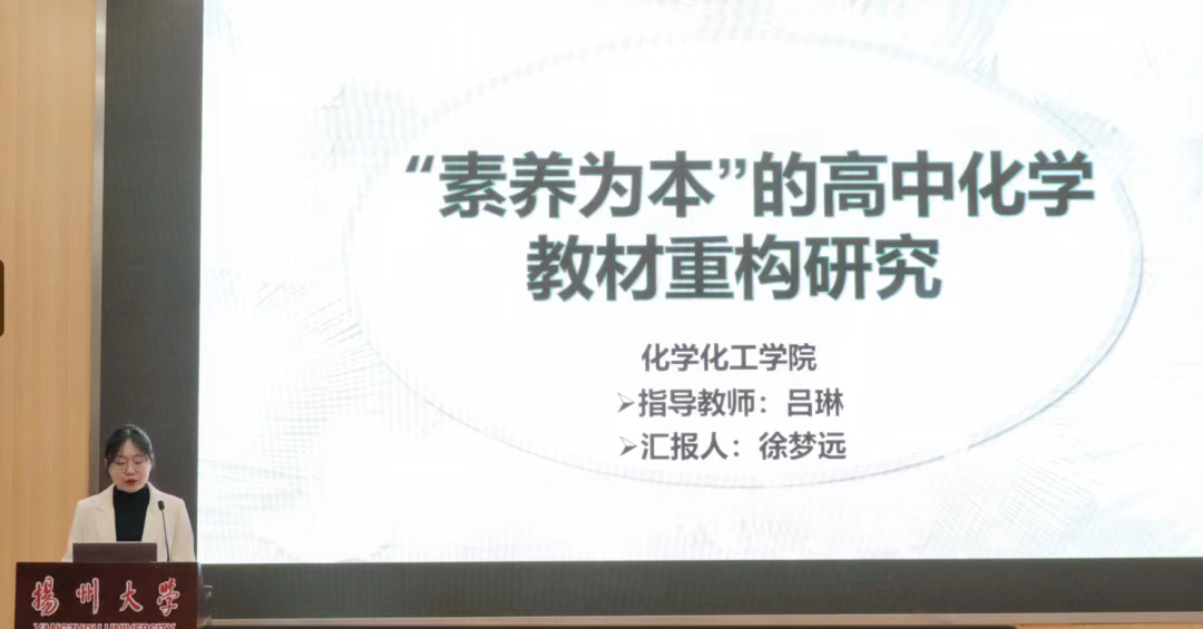 内容回顾:徐梦远同学立足于高中化学,以案例研究为主要方法,对此展开了相关研究。首先进行了相关的理论研究:界定了教材重构的内涵;分析了教材重构的类型及流程;基于素养为本的要求,从重构目标、重构内容、重构方式、重构范畴四个角度明确了教材重构的特征;总结了情境化、问题化、过程化、结构化的素养为本教材重构策略。在此基础上,徐梦远同学还通过问卷调查、访谈、课堂观摩等方式,探查高中化学教师教材重构现状及影响因素。最后徐梦远同学提出促进素养为本的教材重构实施的两个建议:1.希望有关教育部门为一线教师开展关于教材重构的相关培训;2.教师要更新教学理念,加强自身的学习建设,主动投身教材重构的研究。