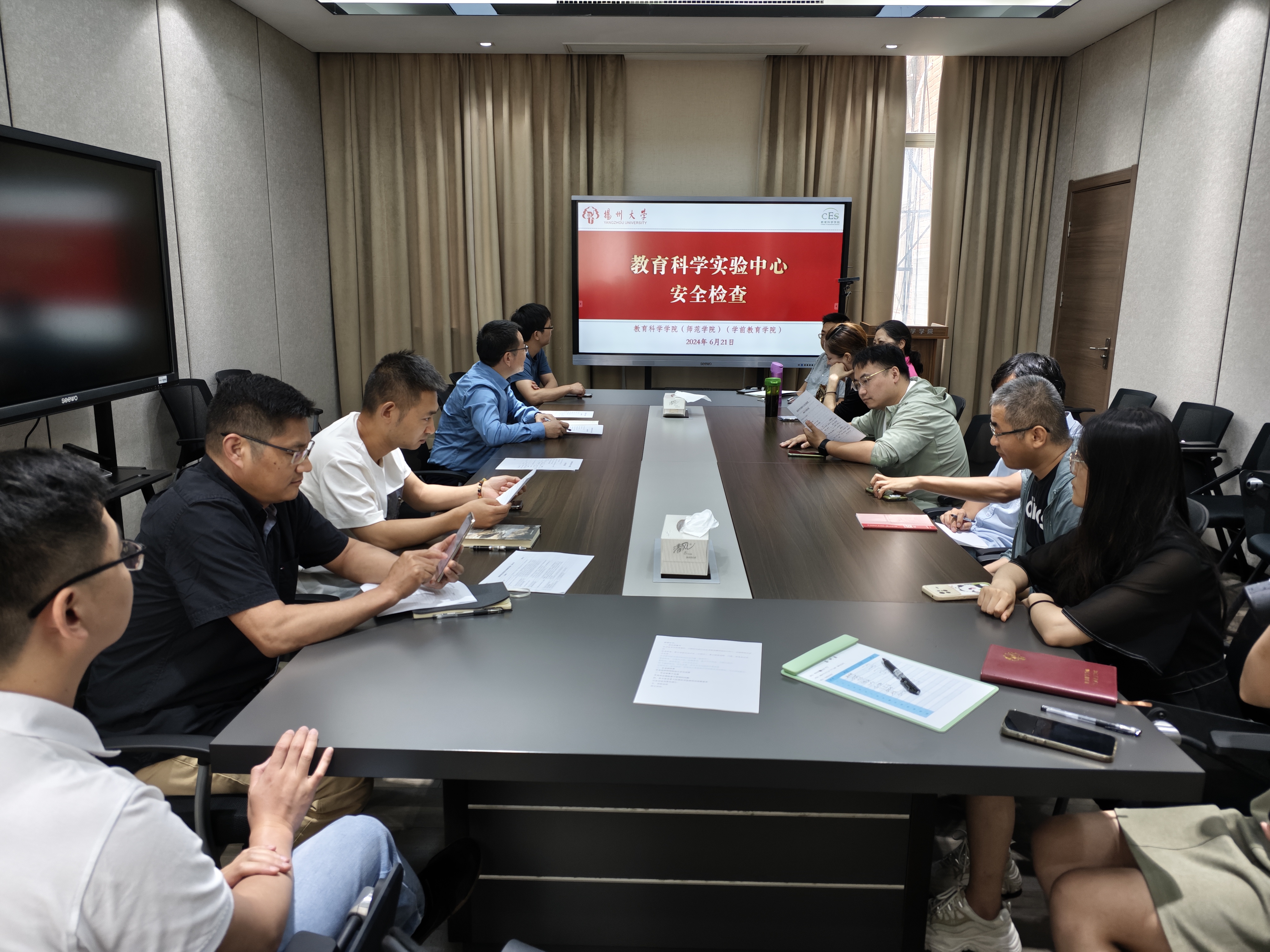2024年6月21日下午2:30,实验中心分管院长刘牧、各系部主任及各实训室负责人对学院65号楼及18号楼所属实验(实训)场所进行安全检查和隐患排查,随后在会议室集中反馈实训室检查情况及提出改善措施。