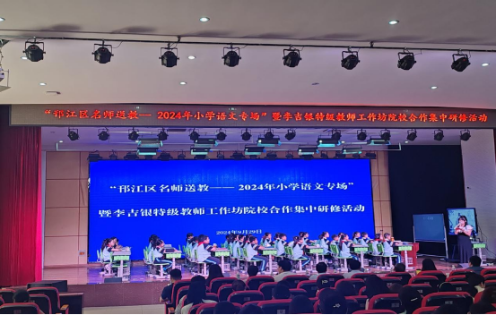 为进一步推动学院青年教师深入了解基础教育一线,强化院校合作,助力青年教师成长,促进课堂教学质量提高,提升教师的专业素养,扬州大学教科院联合附属杨庙小学于9月29日在扬州大学教科院附属杨庙小学举行了“邗江区名师送教——2024 年小学语文专场”暨李吉银特级教师工作坊集中研修观摩活动。本次活动主题为“语文“好玩”:指向学科育人的课例群开发研究”。我院青年教师和本硕学生代表近百余人和李吉银特级教师工作坊全体成员、邗江区各小学语文教师代表共同参加了本次活动。