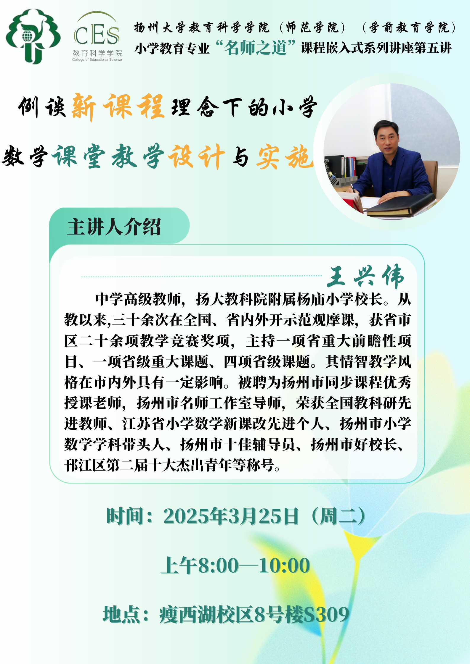 扬州大学教育科学学院(师范学院)(学前教育学院)小学教育专业“名师之道”课程嵌入式系列讲座第五讲