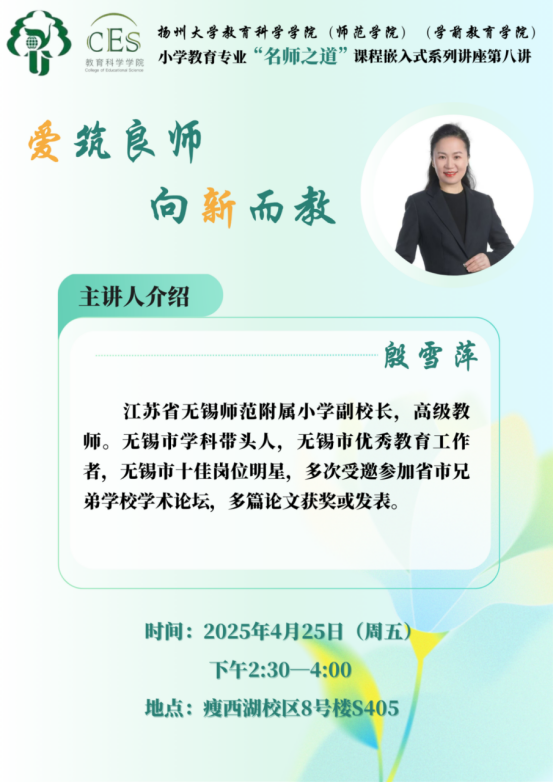 小学教育专业“名师之道”课程嵌入式系列讲座第八讲--爱筑良师,向新而教