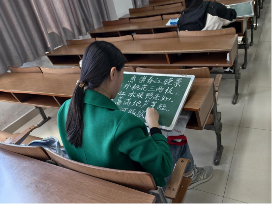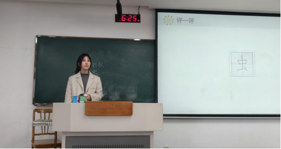 教学基本功考核,是师范生培养的常规活动,也是同学们全面展示三年学习成果的重要窗口。在粉笔字、钢笔字书写环节,同学们要在10分钟内完成20字的钢笔字和28字的粉笔字,重点考核汉字书写的能力,强化学生对书写重要性的认知。模拟授课环节,同学们自选课题开展8分钟的模拟授课,评委老师根据授课情况给出改进建议。