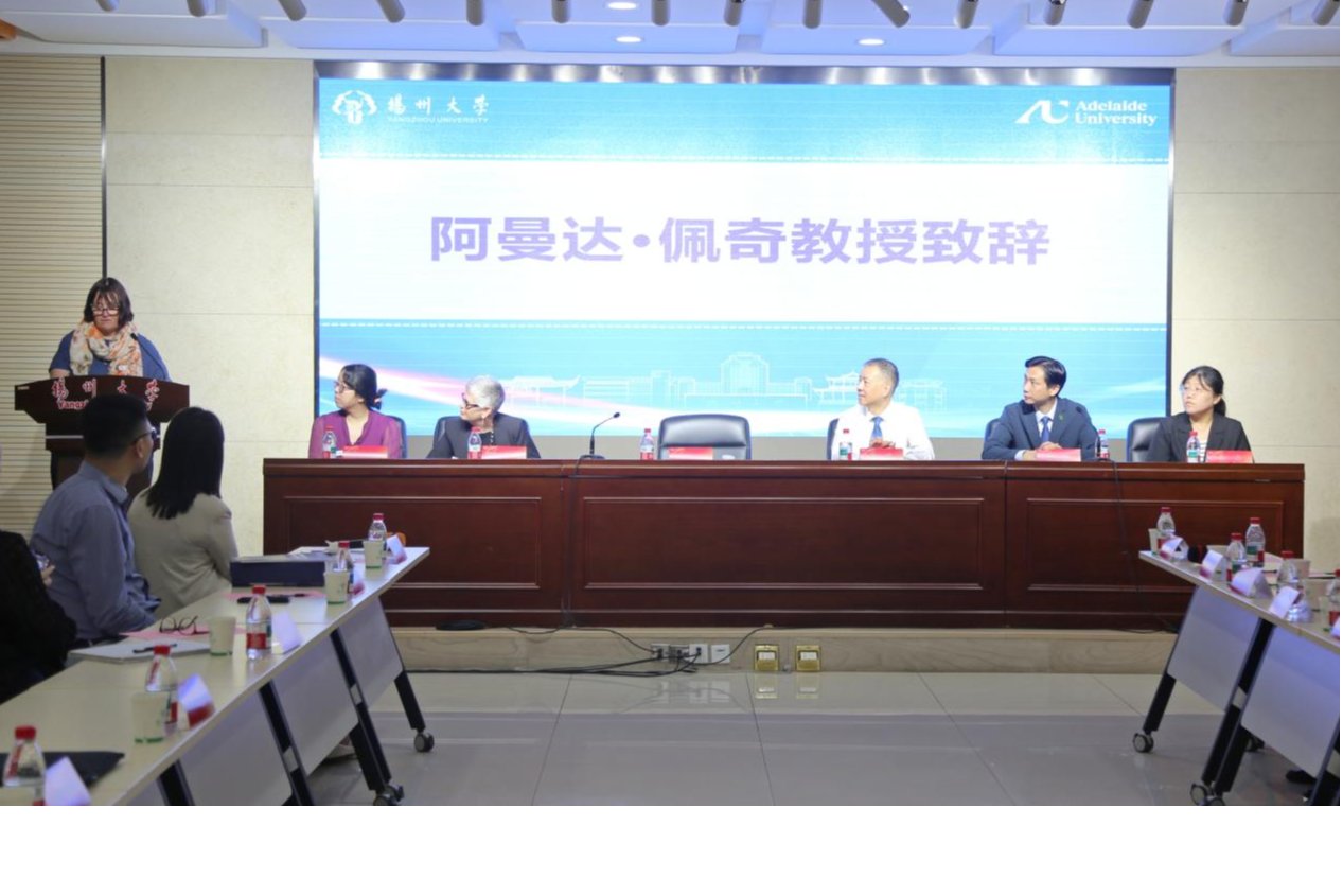 随后,阿德莱德大学健康与医学科学学部副部长阿曼达·佩奇教授代表澳方致辞。她衷心感谢扬州大学的热情款待,扬大朝气蓬勃的学生、敬业的教师团队和深厚的校园文化底蕴令她印象深刻。她表示,阿德莱德大学十分珍视此次合作机会,希望首批“2+2”项目学生能在2027年顺利赴澳学习,更期待两校合作能进一步深化,共创更多发展机遇。