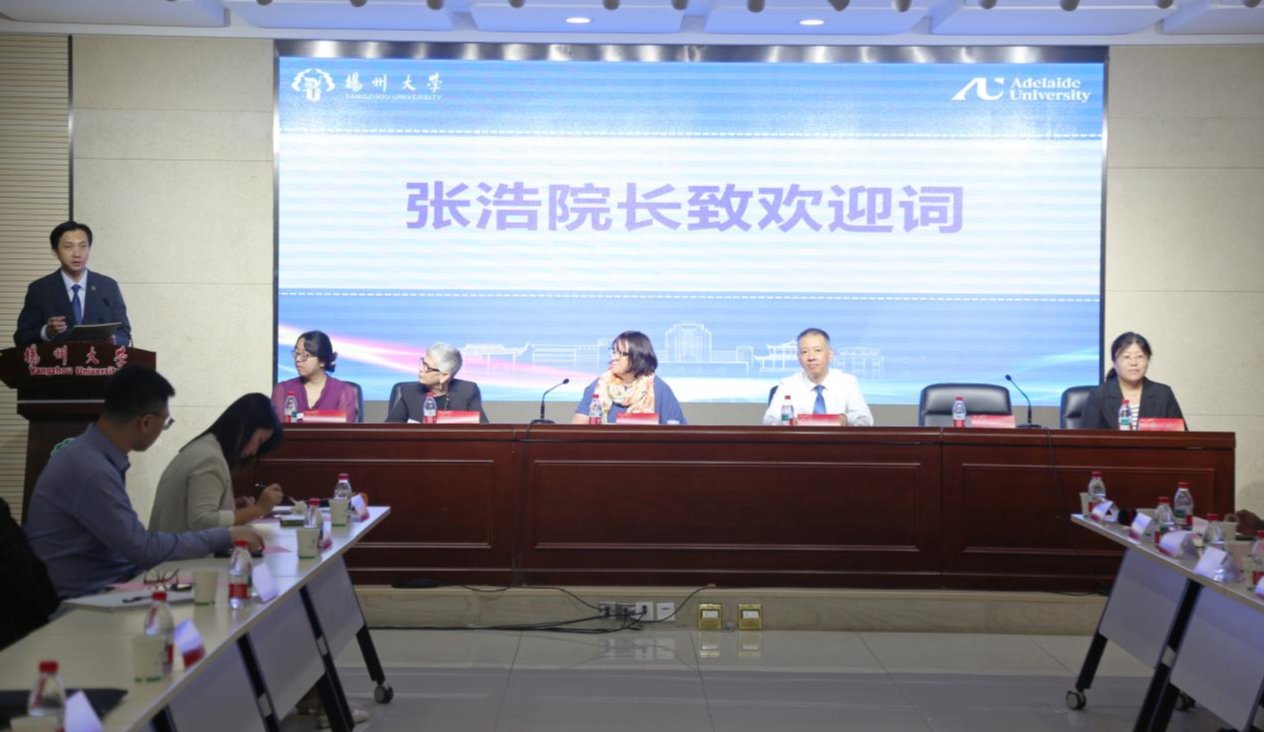 扬州大学教育学院院长张浩教授首先致欢迎辞,他代表学院对远道而来的阿德莱德大学代表团表示热烈欢迎,并向28位新生表示热烈祝贺与欢迎。他勉励同学们做智慧的思考者,以激情汲取前沿知识;做温暖的实践家,将所学服务于社会。他表示,学院将持续提供优质的教学资源和良好的学习生活环境,全力为大家的梦想护航。