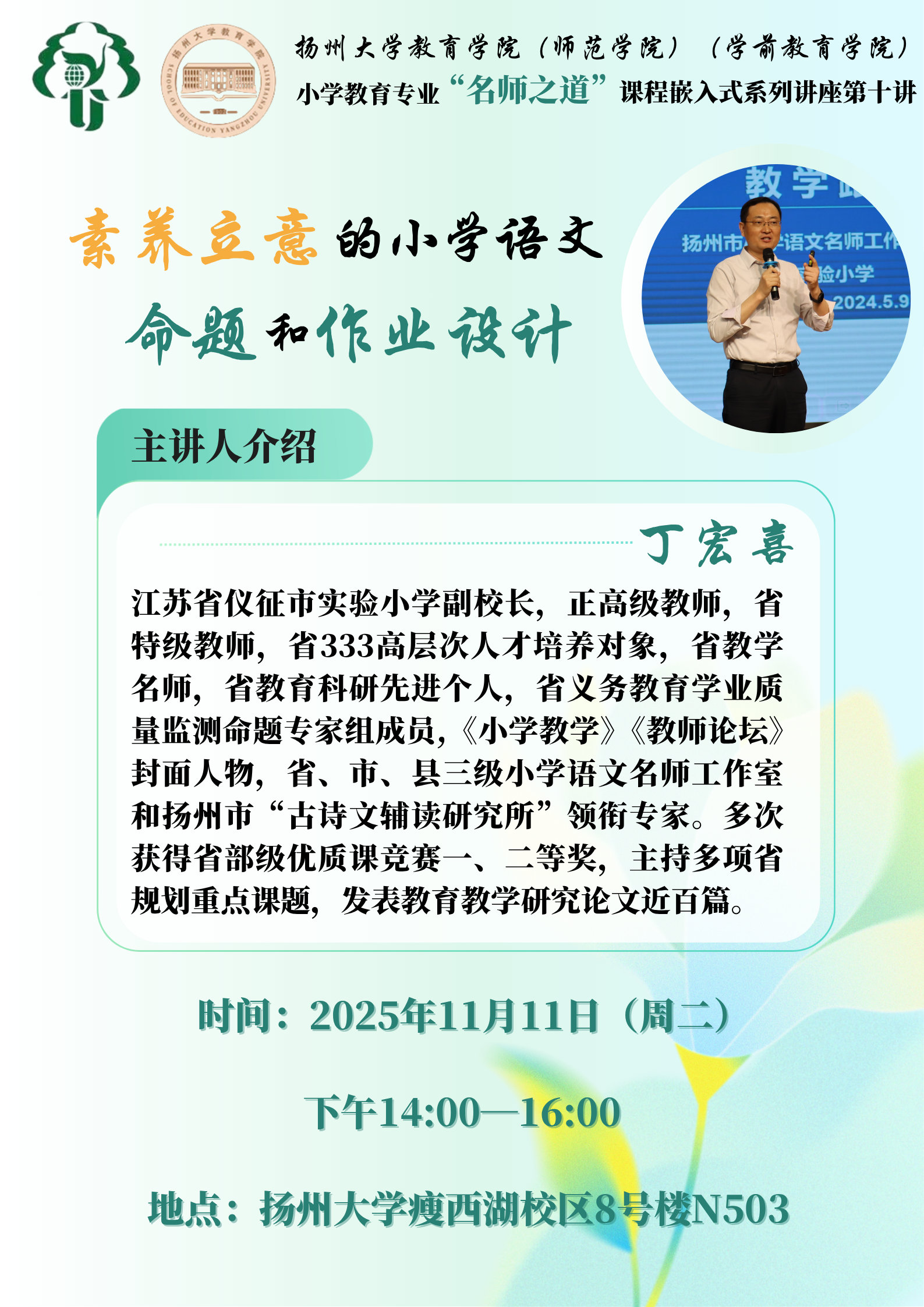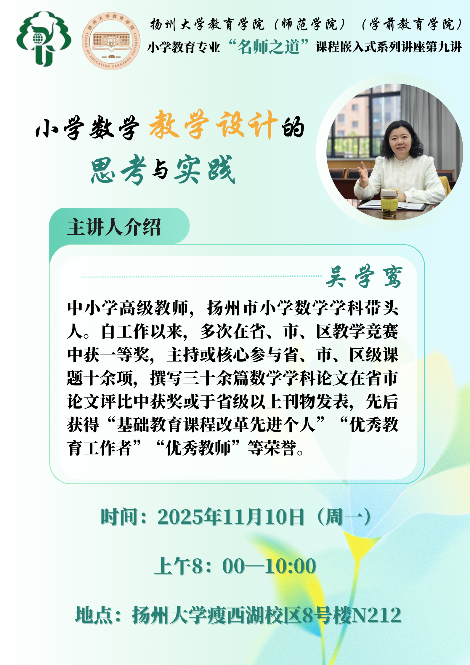 教育学院(师范学院)(学前教育学院)小学教育专业“名师之道”课程嵌入式系列讲座第九讲、第十讲